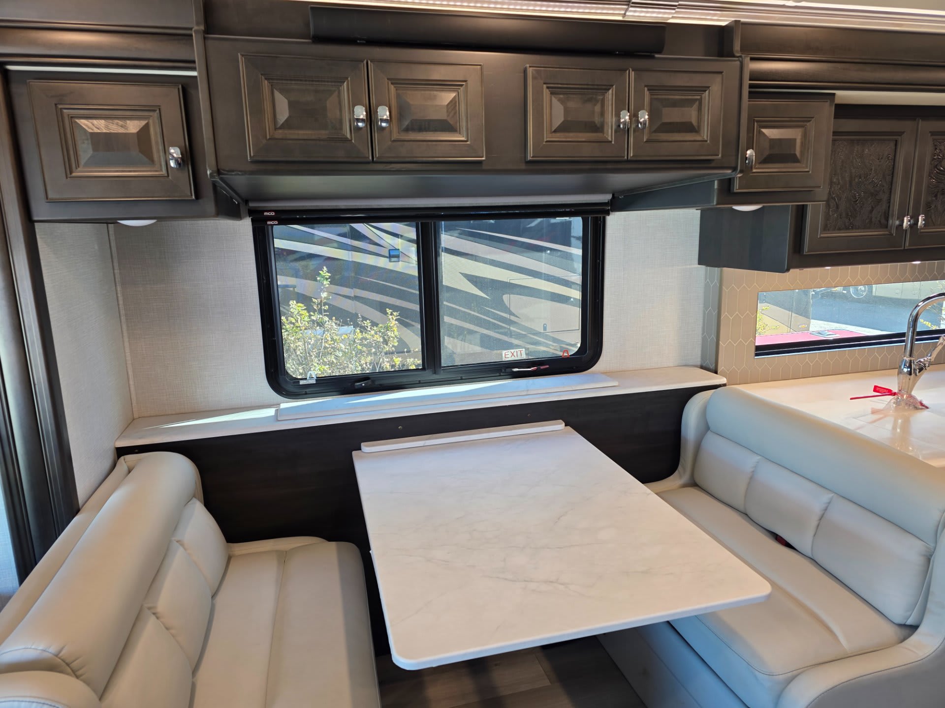 This 2024 Holiday Rambler Nautica 34RX diesel pusher at RV Select in Seffner combines luxury living with practical design. The **rear bedroom** layout features phenomenal storage throughout, while the main living area showcases comfortable power reclining theater seats and **outdoor entertainment** capabilities for enjoying Florida's year-round weather. What sets this Nautica apart is its thoughtful details - from the easy auto-leveling system and accessible storage compartments to the luxury induction cooktop. The **drop-down bunk bed** spans an impressive 81 inches wide with thick mattress support, making it ideal for additional guests. Built on Holiday Rambler's smooth XCE chassis with V-Ride suspension, this diesel pusher delivers the high-end build quality the brand is known for.
