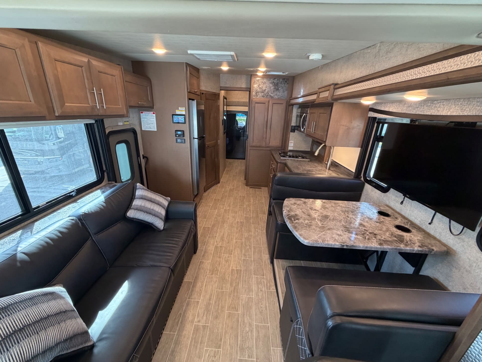 This 2022 Thor Motor Coach Outlaw 38KB at RV Select in Seffner, Florida, delivers the ultimate toy hauler experience with its **spacious 10-foot garage** that holds 2,000 pounds and transforms into an outdoor patio space. The **bunk over cab** design maximizes sleeping capacity while the **king Tilt-a-View bed** provides premium comfort in the master suite. What sets this Outlaw apart is Thor's thoughtful construction featuring a full-body paint job, abundant storage with 141 cubic feet of exterior compartments in rotocast bays, and practical amenities like a residential refrigerator and induction cooktop. The **outdoor entertainment** setup keeps the fun going outside, while three air conditioning units ensure comfort in any climate. At $134,400, this well-equipped Class A toy hauler is ready for your next adventure with auto-leveling, solar capabilities, and enough garage space to bring along your favorite toys.